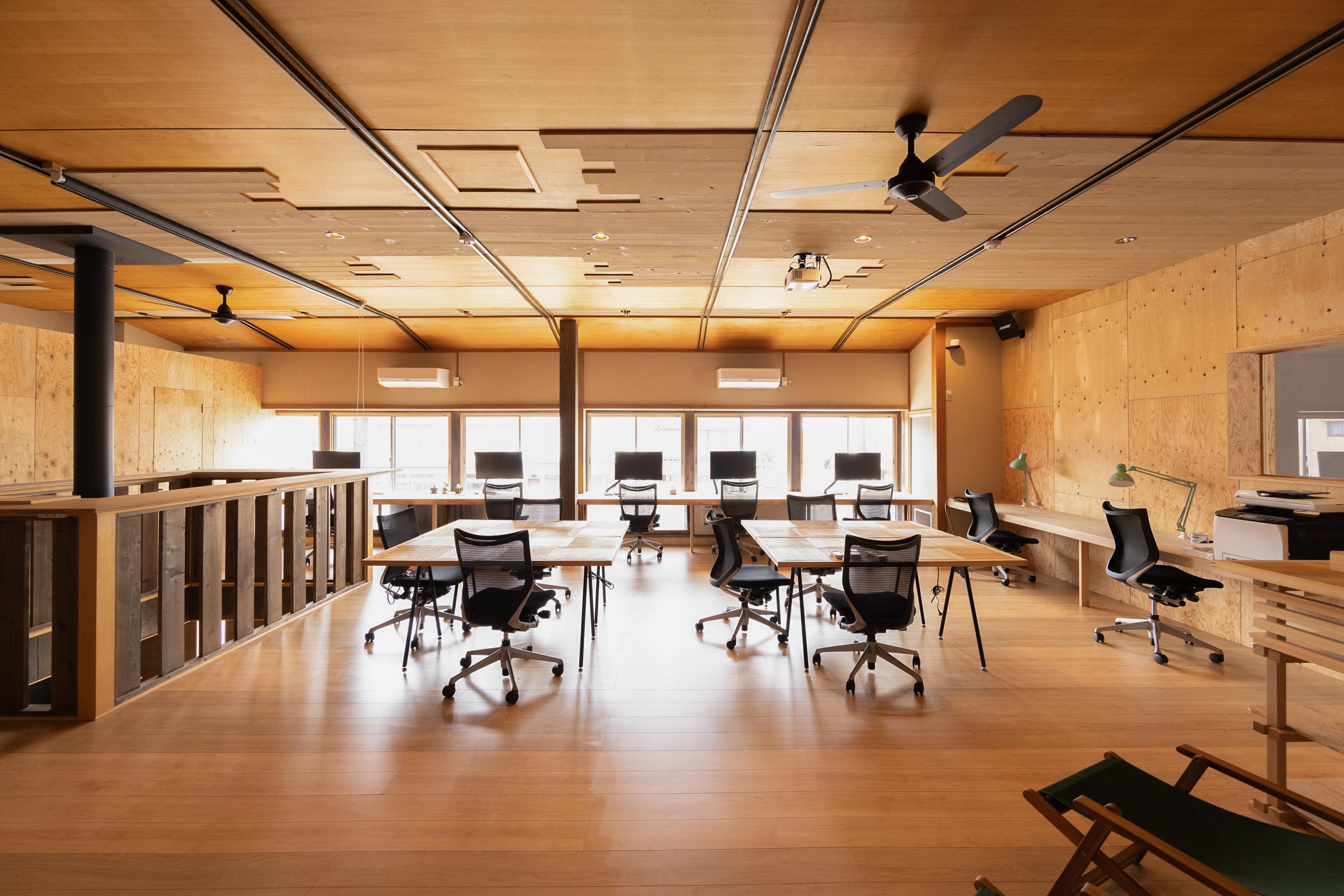 コワークスペースはホステルの2階に併設されており、木を基調とした穏やかな空間です。 広々とした空間は、薪ストーブの熱気とエアコンによって最適な温度に保たれています。 モニターや椅子の座り心地にこだわり、最高の作業環境をご用意しました。ご宿泊の方は勿論、そうでない方もご利用できます。